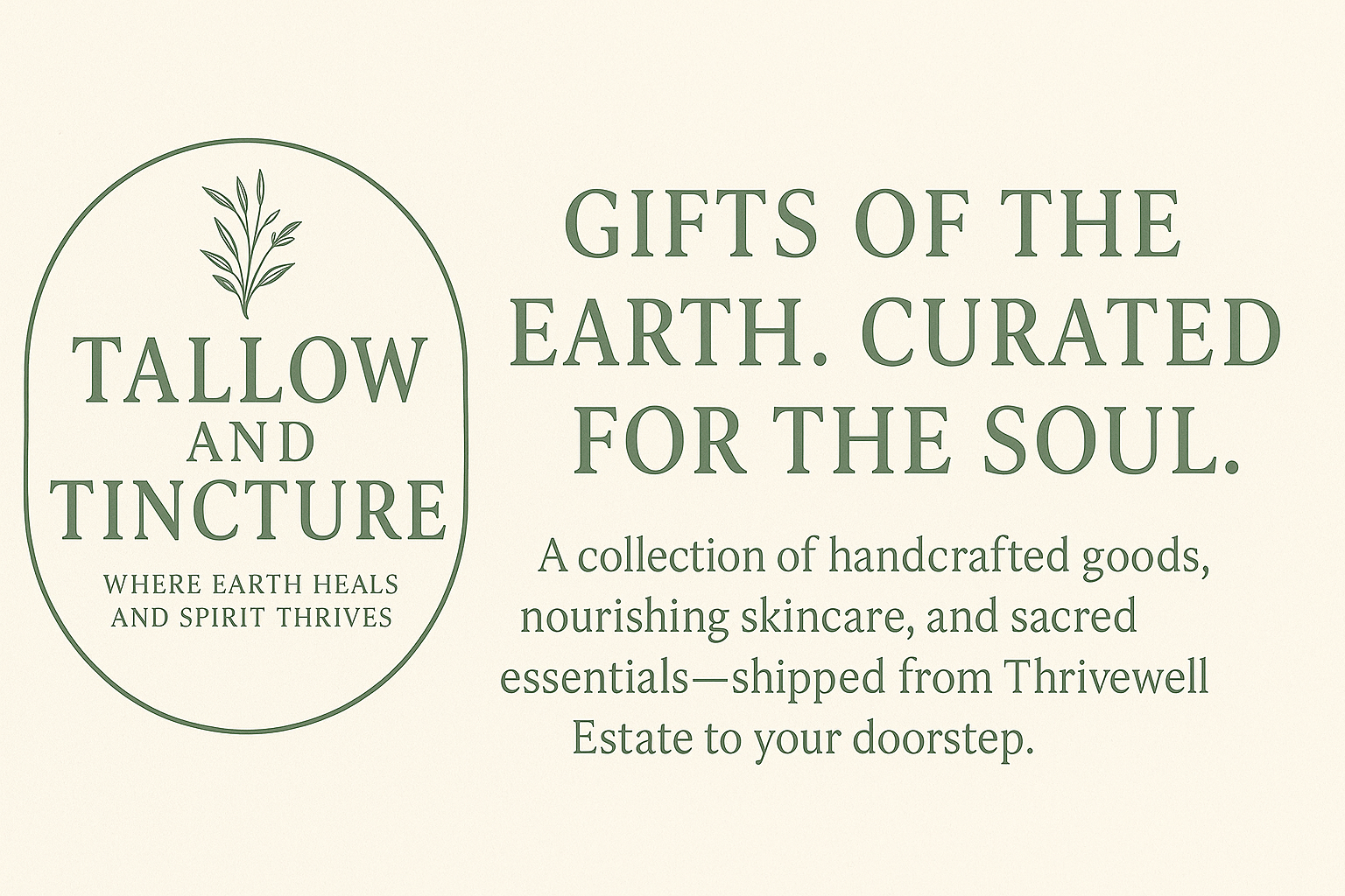 This isn’t just an online shop—it’s a living extension of Thrivewell Estate’s mission. Each item is a reflection of the land, the care, and the community being cultivated here. Whether you’re a local visitor or a distant kindred spirit, Tallow & Tincture welcomes you to bring a piece of Thrivewell into your own home and healing practice.